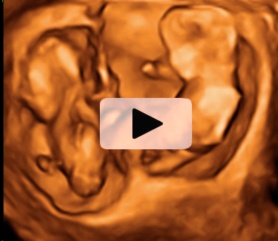 Los movimientos de estos gemelos de 12 semanas de gestación son extraordinariamente claros en la ecografía 4D. Los bebés mueven todo su cuerpo, especialmente brazos y piernas, adoptando multitud de posturas. Destaca el aspecto fieramente humano de los fetos, a pesar de su diminuto tamaño. Cuentan con dos placentas y dos bolsas independientes; la gruesa membrana de separación entre los bebés es visible en el registro ecográfico.