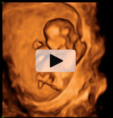 Cada gemelo está con la cabeza en una dirección, tal y como se aprecia en esta ecografía en 4D. Los dos fetos "contrapeados" tienen bolsas y placentas independientes. Destaca el movimiento del gemelo que aparece en la parte superior de la imagen: pareciera que se "arranca" a bailar al final del vídeo, mientras que su hermano permanece más tranquilo en su bolsa.