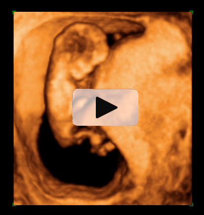 Ecografía 4D de gemelos de 12 semanas "contrapeados": Cada uno de los bebés está con la cabeza en una dirección, tal y como podemos visualizar en el ultrasonido. Uno de los gemelos se mueve al final de las imágenes de la ecografía mientras su hermano descansa.