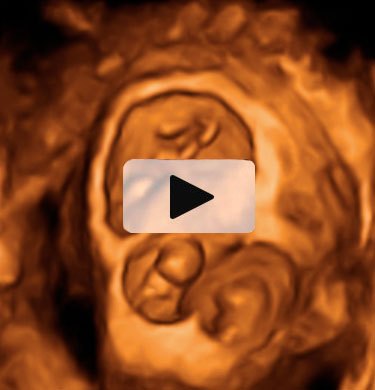 En esta ecografía 4D, que corresponde a gemelos, podemos observar el curioso movimiento de los hermanos, que parecen estar jugando al fútbol. La realidad es que los niños se mueven por estimulación. A veces es uno el que se mueve y otro permanece quieto, y viceversa; pero en otras ocasiones, los dos se mueven a la vez, en un gracioso enredo de pies. Los fetos están en dos bolsas independientes, pero solamente hay una placenta.