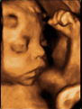 Ecografía 4D de la cara de un bebé en el tercer trimestre de embarazo