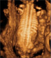 Ecografía 4D de un feto parpadeando en el tercer trimestre de embarazo