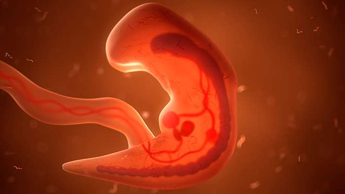 Hacia la 4ª semana (es decir, a los 28 días desde la fecundación) se produce el cierre del tubo neural, que se convertirá en la médula espinal y el cerebro del bebé.